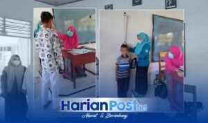 BOALEMO, HARIANPOST.ID- Siswa-siswi Sekolah Menengah Pertama (SMP) Negeri 2 Mananggu, mengikuti kegiatan penjaringan kesehatan yang dilakukan Puskesmas Mananggu, Jum’at (22/7).